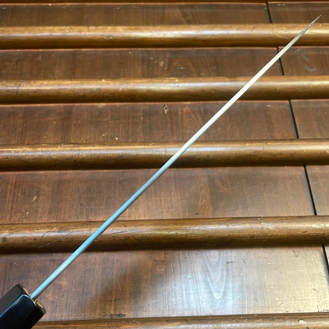 These knives represent a blend of the rustic and the refined. They have a dark forge-scale ‘kurouchi’ finish and exceptionally thin grinds to support the superb forging. Nakagawa-san’s smithing is characterized by thorough heat treatment with excellent heat control during forging. The result are knives that have remarkable edge formation and edge retention while remaining tough.