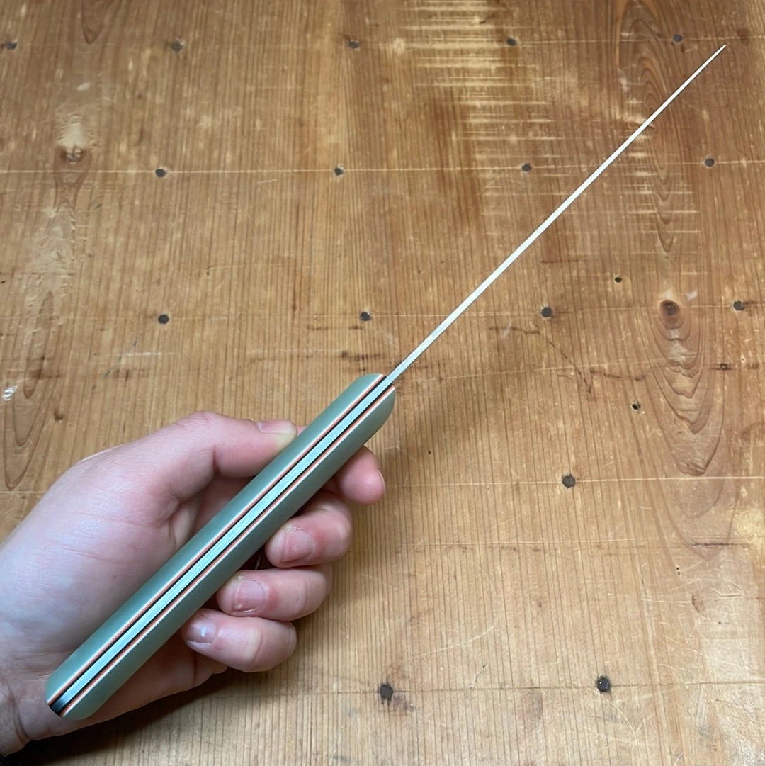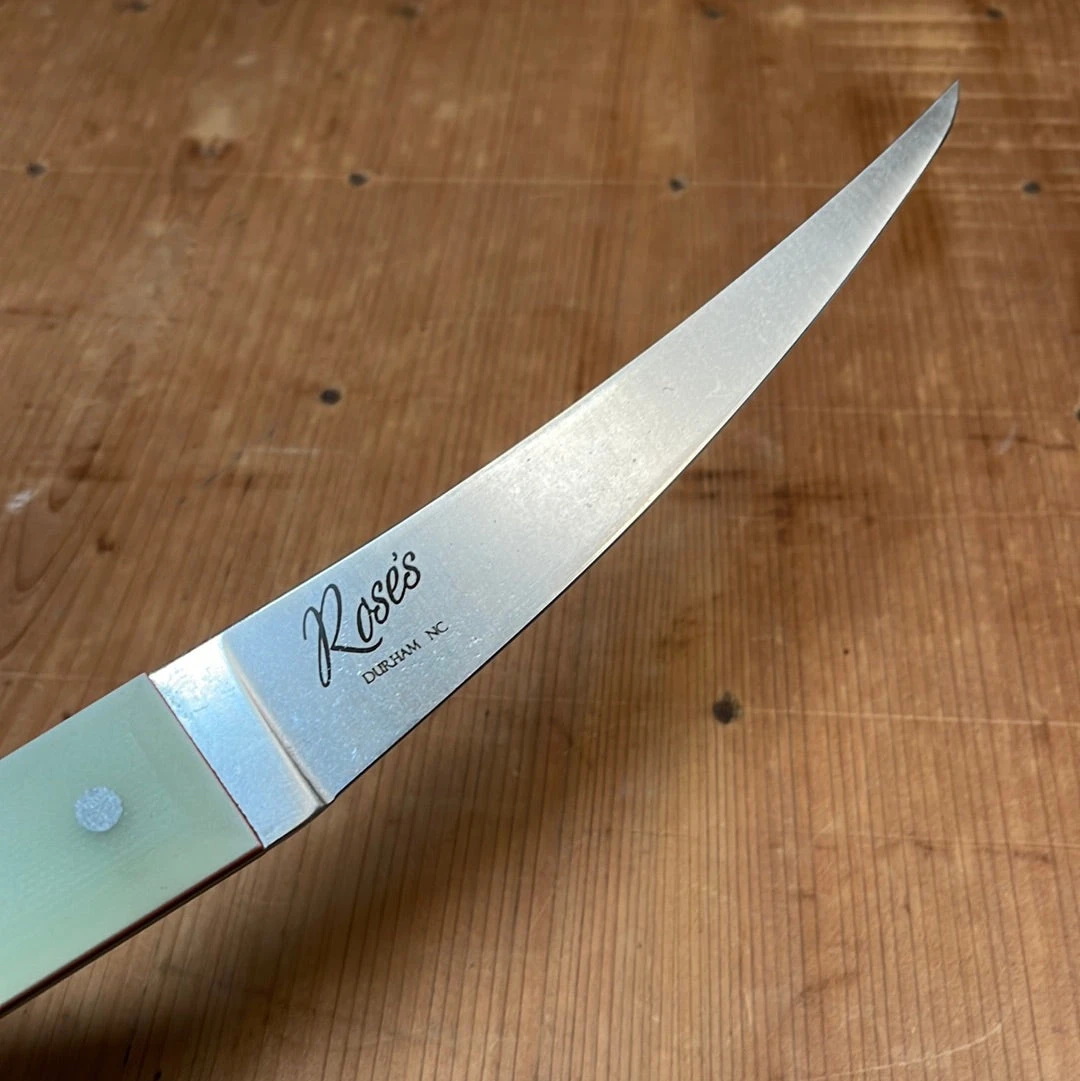 Designed by Daniel Hilgenberg and chef & butcher Justin Meddis from Rose’s in Durham, NC. This knife is able to keep up with the demands of large production butchery, as well as being able to do clean precise work. These have received rave reviews from the butchers we know who use them!
