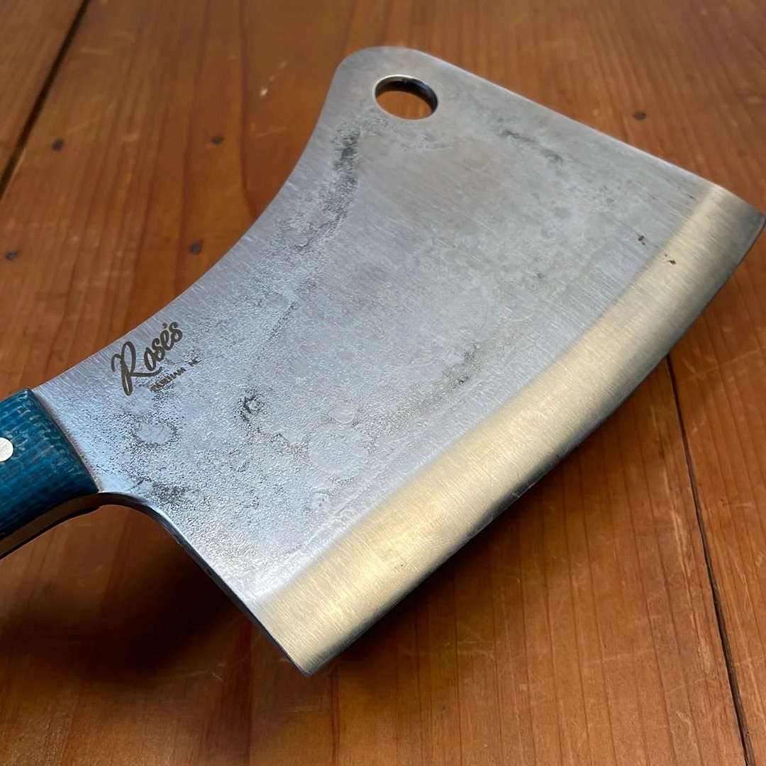 Handmade by Daniel Hilgenberg of Silverthorn Knife & Tool, 1084 carbon steel is a great material for butcher’s cleavers, tough and capable of taking and holding a good edge.
