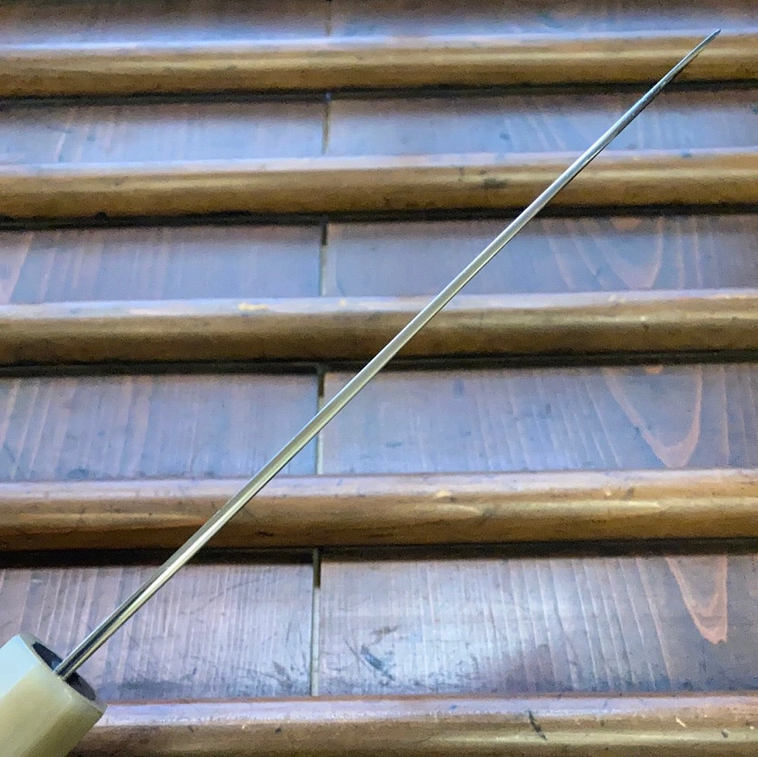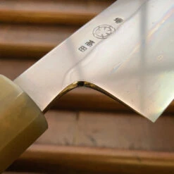 Mitsuaki Takada has spent many years as a grinder in Sakai and specializes in double bevel hamaguri style convex grinding. He worked for Ashi Hamono for many years, and is very skilled at grinding thin double bevel knives with excellent cutting feel.