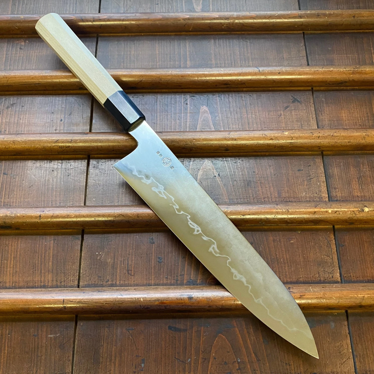 Hand made iron clad shirogami 2 in Sakai Osaka Japan, forged at Shiraki Hamono by the super talented young smith Nakagawa-san and hand ground and finish sharpened at the Takada no Hamono workshop.