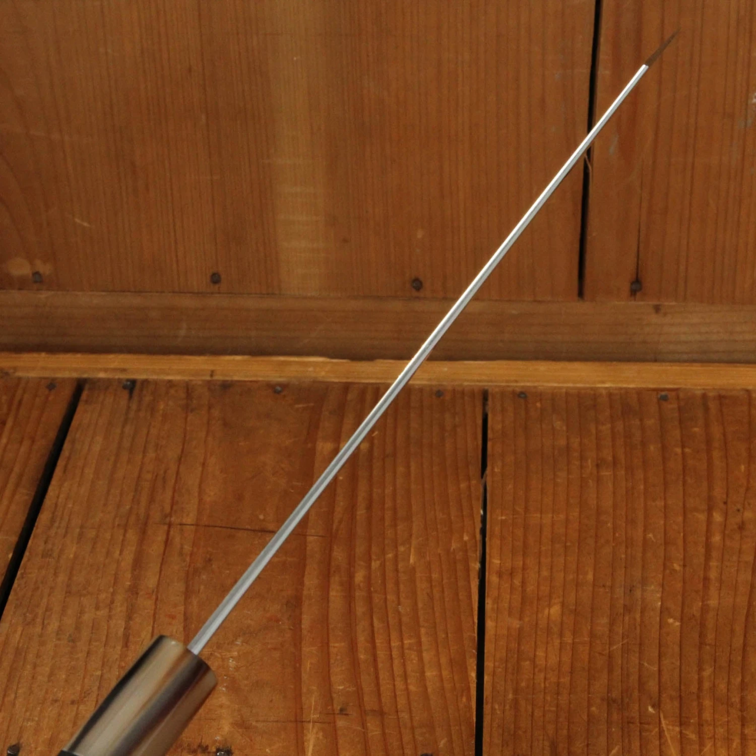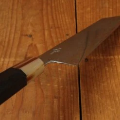 Takada-san has spent many years as a grinder in Sakai and specializes in double bevel hamaguri style convex grinding. He worked for Ashi Hamono for many years, and is very skilled at grinding thin double bevel knives with excellent cutting feel. Their thinness makes it important to avoid misuse such as scraping, twisting and using on hard objects like bones, frozen foods and dense vegetables.