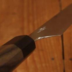Mitsuaki Takada has spent many years as a grinder in Sakai and specializes in double bevel hamaguri style convex grinding. He worked for Ashi Hamono for many years, and is very skilled at grinding thin double bevel knives with excellent cutting feel.