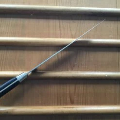 Tojiro’s DP series are made with a three layered blade. VG-10 stainless steel is the cutting edge at the core, and it is clad with stainless. A great heavy-use work horse, VG-10 is typically not our favorite steel to sharpen due to the wear-resistance from it’s cobalt content. However, it commands long edge life and is fairly low maintenance. The handles are made of black stamina wood; which is an extremely stable material fabricated with resin-impregnated wood veneers that have been compressed under high heat.
