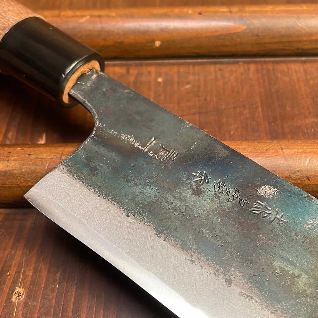 Tosa Tadayoshi 165mm Nakiri. Aogami 1 steel with iron cladding. Walnut D shaped handle with plastic ferrule