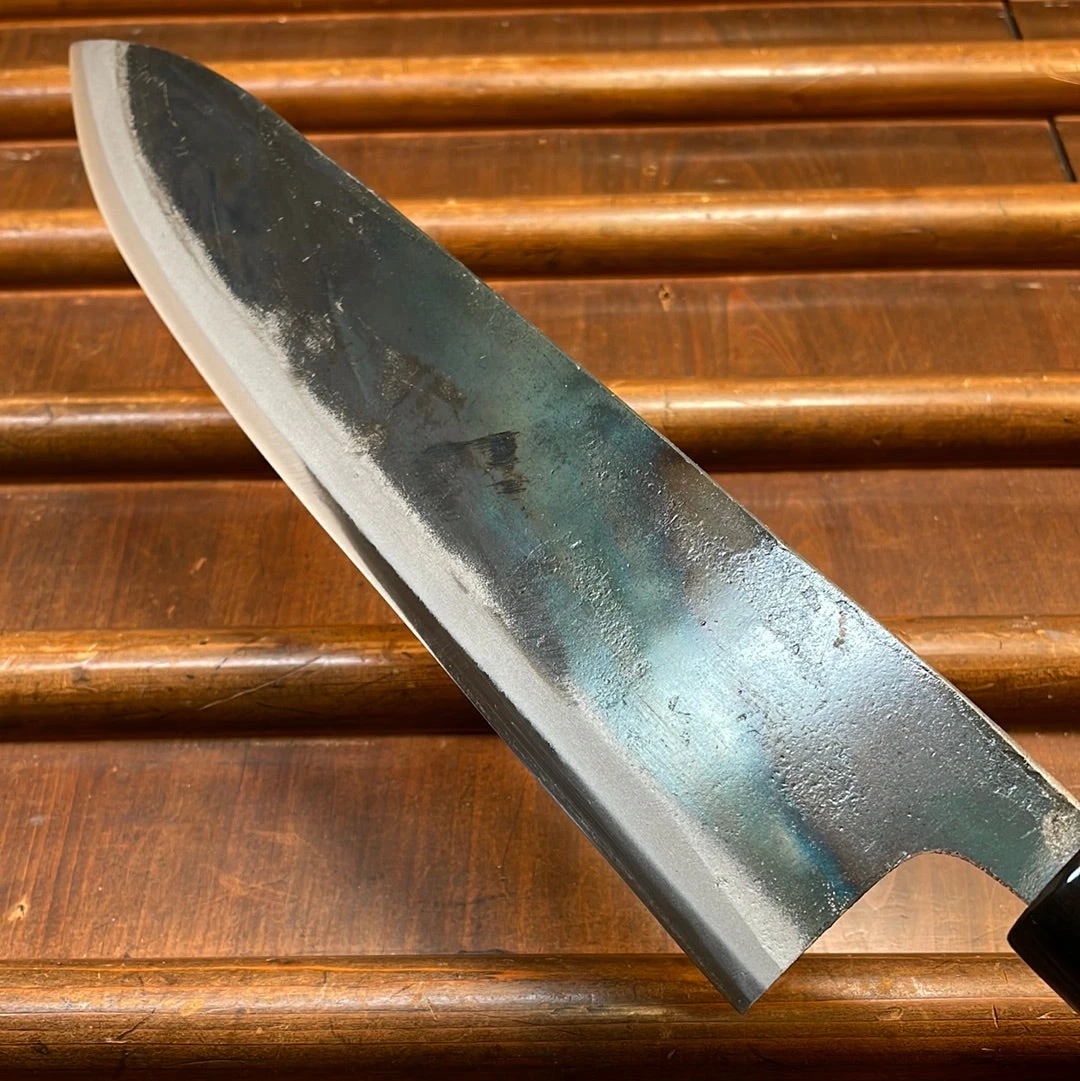 Tosa Tsukasa 240mm gyuto. Shirogami 1 steel with iron cladding. D shaped ho wood handle with horn ferrule.