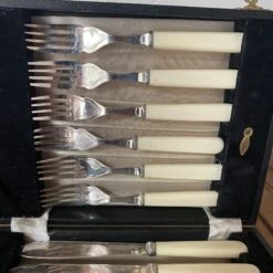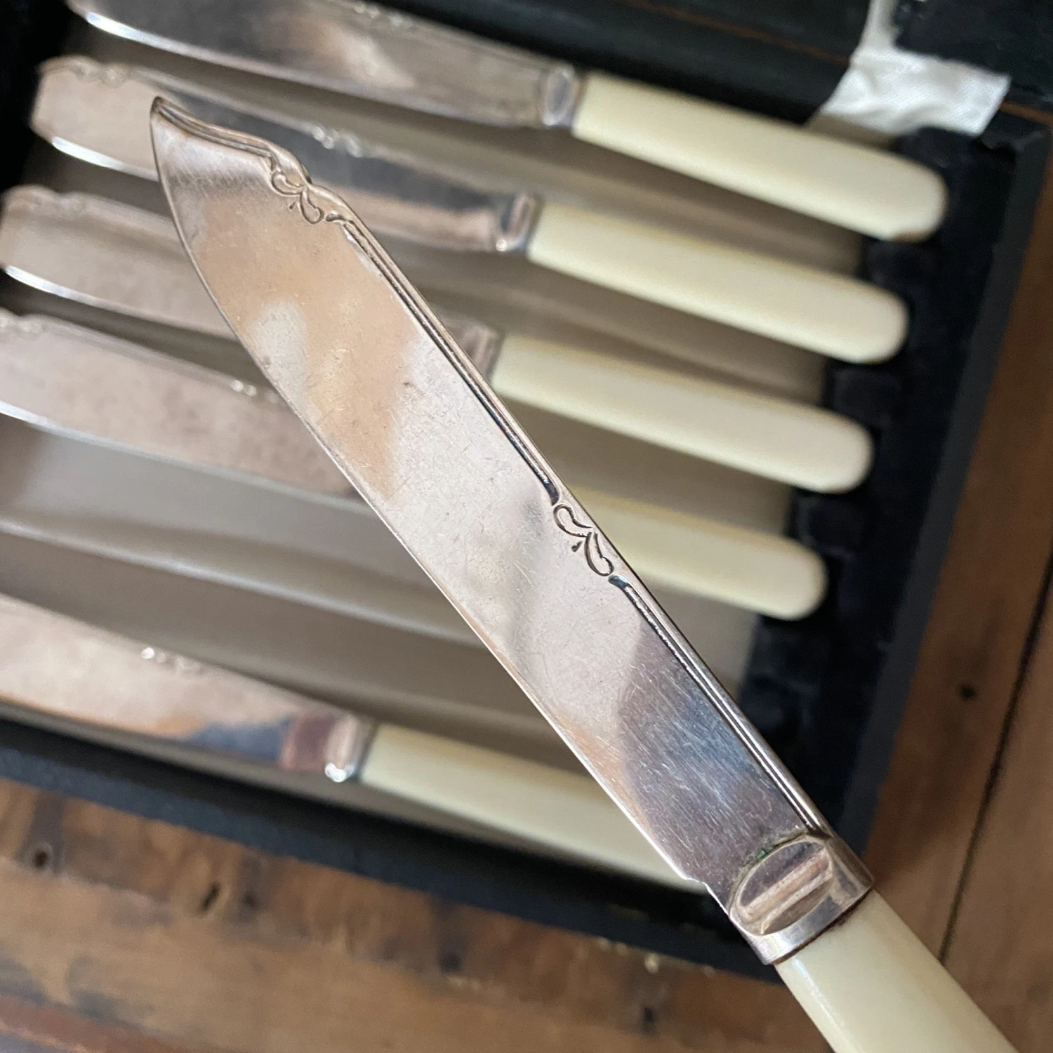 Vintage Fish Forks & Knives Silverplate & Celluloid -English 1930’s?