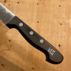 Old time customers of ours will recognize these from many years back. We found a contact for these as new old stock in 2007 and sold a variety of them for years. A crate or two of knives from this makers were imported in 1987 and mislabeled (maybe on purpose?) as ice cream scoops and then later auctioned off in a warehouse auction. There were a variety of forged and knives dating from the 1980’s, 70’s and possibly older with these stamped knives being from the 1980’s. Not many knives were imported to the USA from this brand.