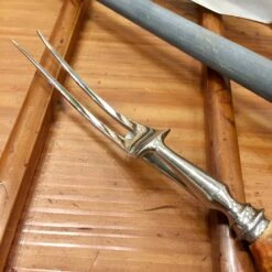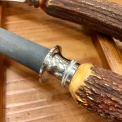 Vintage Harrods Carving Set Carbon Steel Blade, Stainless Fork Carborundum Honing Rod C 1930’s-50’s