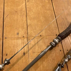 This set has seen some use but still has another life left in it. The 8.25” blade is still pretty full (not too sharpened down) but does have some pits from previous rust at the tip.
