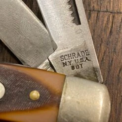 Vintage Schrade ‘Old Timer’ stockman pattern knife from the last era of the great Schrade company. Schrade NY USA stamped knives date from 1973 to 2004, but the company dates back to 1904 when it was founded. They created many innovations to pocket knives especially automatic knives.