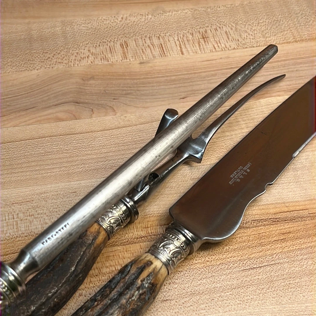 Stag handled caving set marked only ‘SL&S (Sheffield) Ltd Cutlers’ from approx 1900 to 1920 but possibly older.
