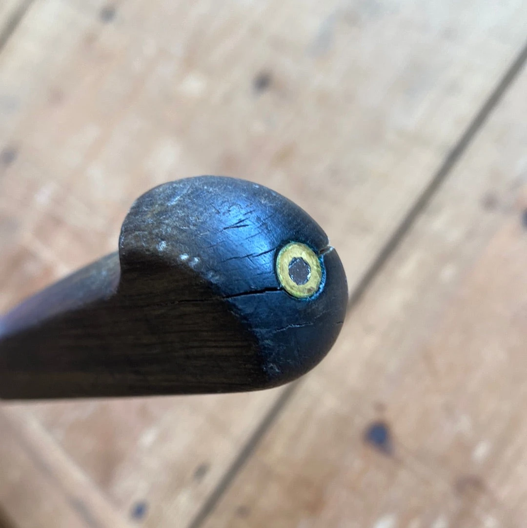 Blade is very full (with a fresh edge) bout the walnut handle had been soaked and dried out a bit resulting in a crack. Provided it does not get further soaking or dishwasher it should hold strong for a good length of time, some epoxy or other glue might help. Price reduced for this.