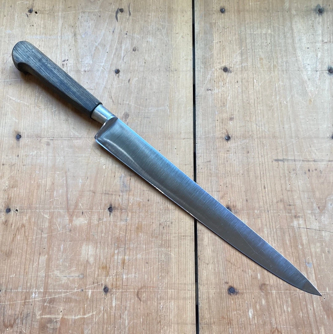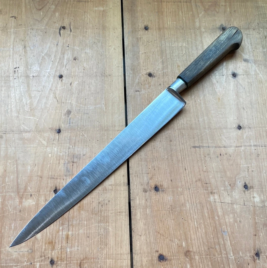 Thiers Issard 4 Star Elephant brand 9.75” Nogent style slicer with stainless blade, nickel ferrule and walnut handle made in Thiers France in the 1960’s or 70’s.