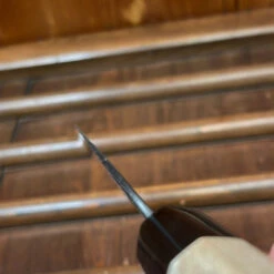 Wakui knives are characterized by a solid middle-weight yet robust Sanjo feel — very thin behind the edges, thicker at the spine, and amazingly easy to sharpen with clean grinds easy for follow up thinning.
