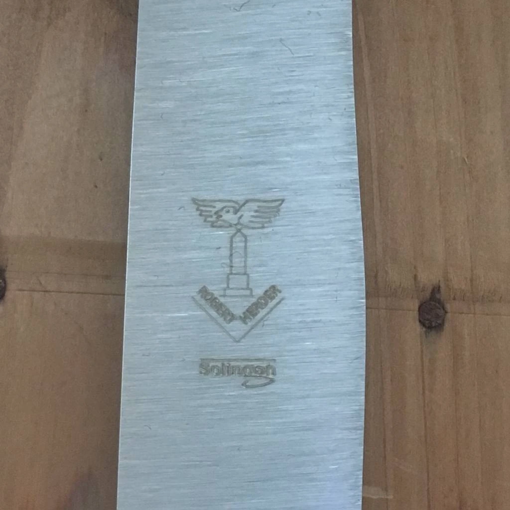The ‘Hamburger’ takes it’s design from the old-style, non-serrated, Hamburg-style bread knife. When common people were preparing bread, they were doing so during work in the fields. Having no use for a table, one would grasp the bread in a head-lock type grip, and cut the bread in slices towards themselves. The emblem on the knife is also an old stamp, showing the bird on top of a pillar. This stamp was entered in 1896 and was the export mark of Robert Herder until 1905. To perpetuate the memory of this time, the stamp is still used today on this specific knife.