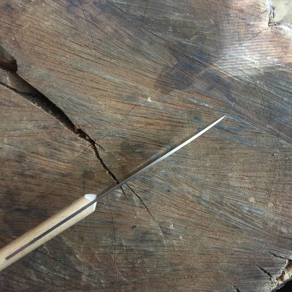Robert Herder Windmühlenmesser knives are made in Solingen, Germany, and still utilize old hand-work techniques. Their fine, hand-ground blades are extremely light and ground thin- they offer a great cutting feel that is not possible with chunky, mechanized-ground blades. Paired with a slight convexity, it makes for reduced friction and sticking during cutting.