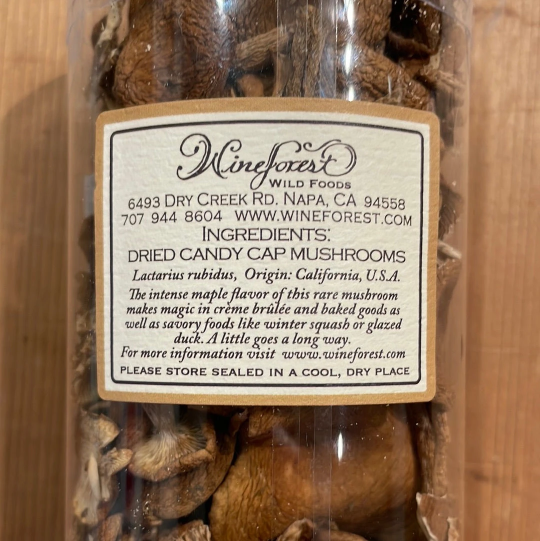 This rare mushroom, the Candy Cap has a haunting, intense maple flavor and is excellent in Crème Brûlée and baked goods as well as savory foods like winter squash or glazed duck.