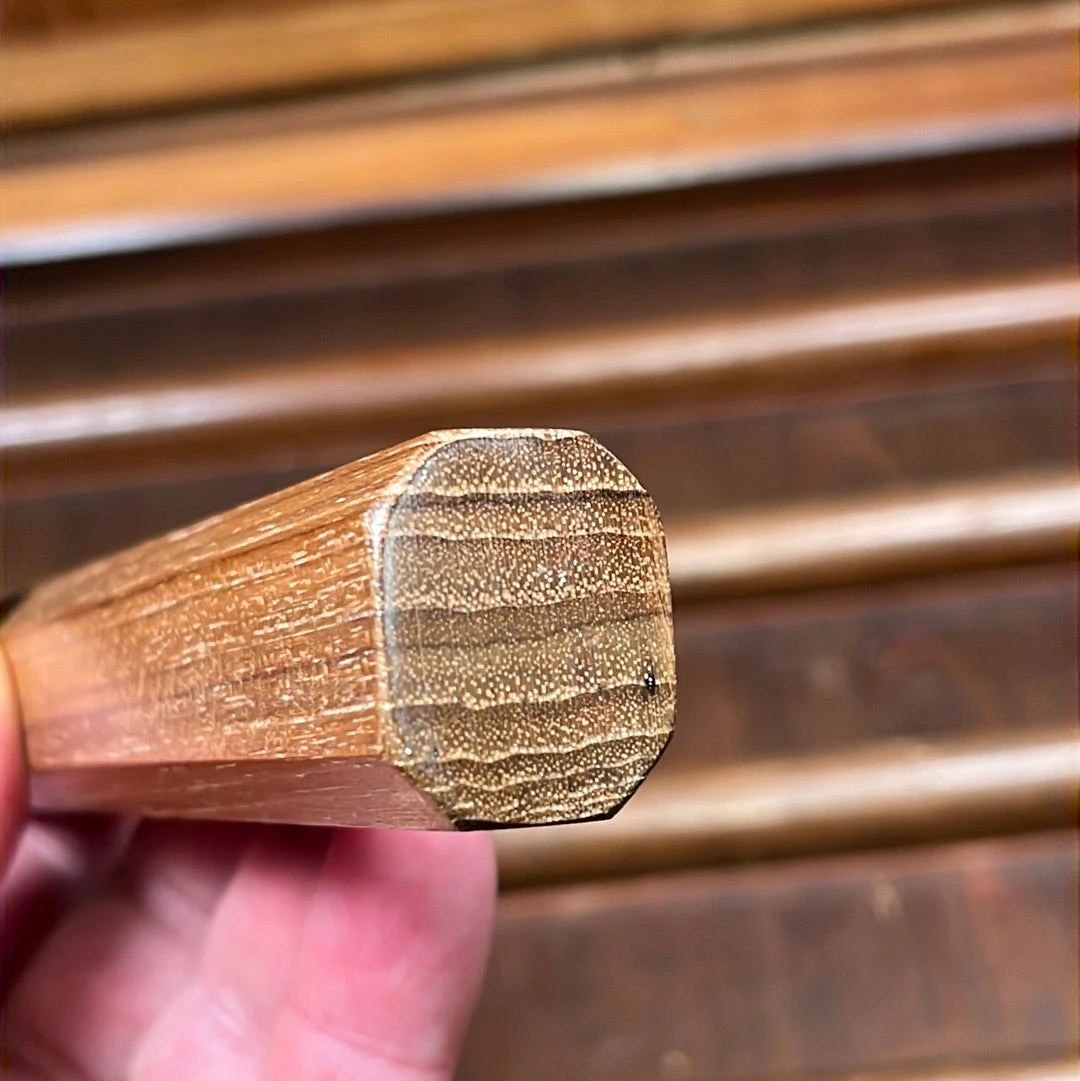 Hardened to 64 HRC, these knives hold a keen edge for a long time, owing to thier excellent heat treatment and despite this hardness they have a good degree of toughness and are very easy to sharpen. Being ground with a wide, kiriba primary bevel, they also allow for easy thinning down the road, especially as Yoshikane kireba grinds are especially flat.