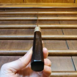 Tanaka-san’s top level forging and heat treatments make for an unusual ease of sharpening and superb edge life and toughness. Shirogami 1 is the highest carbon content of the shirogami steels.