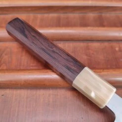Tanaka-san’s top level forging and heat treatments make for an unusual ease of sharpening and superb edge life and toughness. Shirogami 1 is the highest carbon content of the shirogami steels.